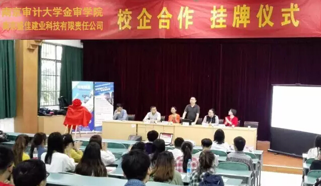 6月5日下午三点半,南京盛佳建业科技有限责任公司技术副总龙刚先生和南京审计大学金审学院校长孟琪璐女士在南京审计大学应天学院举行了隆重的挂牌仪式。龙刚先生在授牌仪式上表示:“南京盛佳建业科技有限责任公司提供的平台,可以让学校的学生们更好的联系在校学到的各种知识,可以让他们成长为更优秀的人才。于此同时,我们也可以教授学生们更多的专业知识与宝贵的实践经验。” 校方代表孟琪璐院长也表示:“学院十分感谢南京盛佳建业科技有限责任公司给予学院的各项支持,并将借着挂牌仪式作为新的契机,努力实现学校参与、企业参与、社会参与和学生参与的良好氛围,为大力发展我国职业教育作出新的贡献!”